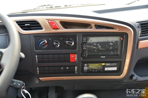中控台分区也是特别地简洁,不会有密密麻麻的复杂感,操作起来会更加得心应手一些。左侧主要为空调系统、DPF再生按键和禁止再生按键等,右侧则是多媒体大屏和行车记录仪。