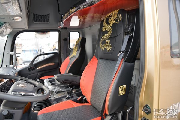 首先是格拉默座椅应用到了6.8米载货车上,照顾到了卡友腰椎、肩颈等职业病问题。其次是古典新潮的皇宫主题设计,由内而外的龙纹元素以及皇宫版专属的LOGO,让大家感受到了不一样的中国卡车文化。最后则是车辆本身优势,奥铃大黄蜂成熟的动力系统、扎实的底盘配置以及轻量化技术,让卡友们在运输路上更加得心应手。