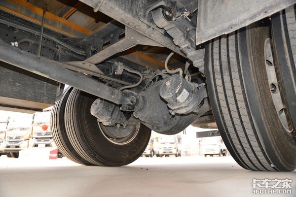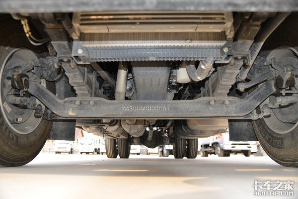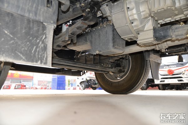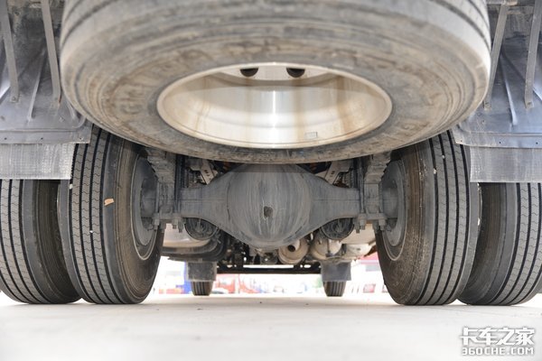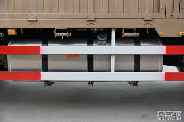 铝合金油箱从体型上来,目测大约在600升左右。搭配上铝合金储气筒、铝壳变速箱、铝合金车轮以及轻量化零部件,对于整车降重能起到一定作用。