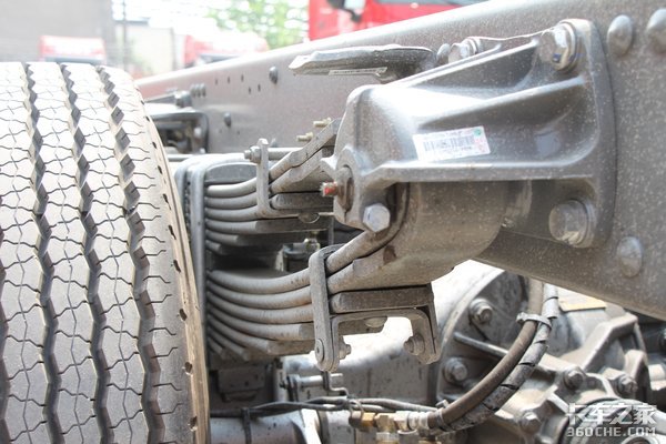 实拍的这款豪沃TX的前后桥允许载荷分别位6500KG、11500KG,弹簧片数是采用前7片后7+6片多片簧的悬挂形式。此外,该车的整车气路阀门、空气处理单元等零部件均是采用的威伯科品牌,同时整车关键部位也同样是采用国内外知名大厂品牌配件。