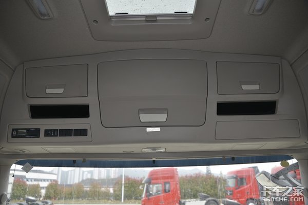 由于从事干线物流运输的卡友大多以车为家,所以在驾驶员的上方设立了三个大尺寸的储物空间。随乘人员上车时,可将携带的衣物、被褥、叙述用品以及食物分门别类的存放在不同隔间,既方便,又卫生。