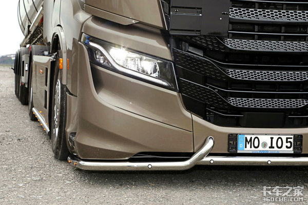 图中车型还采用了前后桥双空气悬架,目前是整车高度最低状态,这样的底盘高度无疑能让S-WAY高速行驶更加稳定,下方安装保险杠为了避免石子、杂物损坏原车部件,不过即便是产生损坏,依维柯S-WAY的覆盖件为模块化装配,单个配件尺寸小、更换相对便宜。
