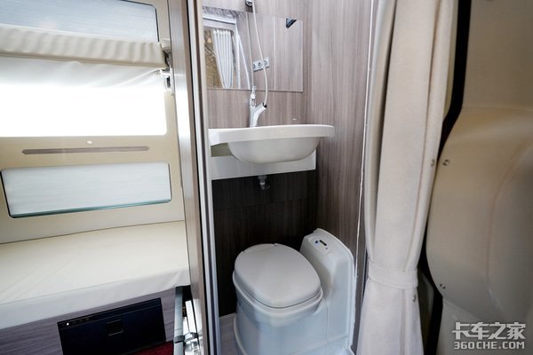 为何取名为生活舱?最大的亮点绝不仅限于卧铺,而是可以让卡友、卡嫂24小时不下车都可以方便的生活在里面。相信不少卡友都经历过高速堵车中内急的感受吧。
