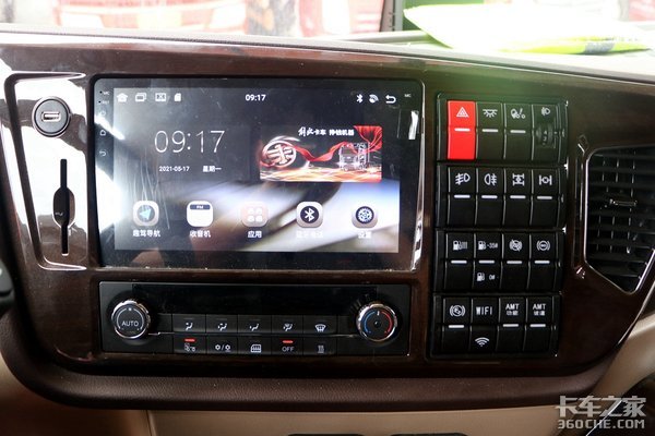 中控区域的大屏集成了多项功能,诸如:导航、应用、多媒体娱乐、蓝牙电话等均有配备,屏幕尺寸较大,使用起来也比较方便。此外,顶部还配有24寸的车载电视以及车载WIFI,这两项功能的加入让卡友可以在休息时间打发无聊的时光。