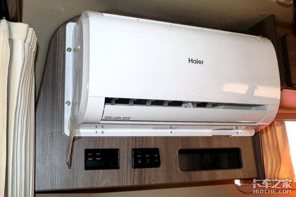 实拍车型装配了一台海尔品牌的壁挂空调,现今,驻车空调已经成了很多牵引车上卡友后期必装的配置,这样即便是熄火后,也能在炎热的夏日享受到空调的快感。而生活舱将这一配置列为了选装项目,各位卡友可根据自身需求来进行合理选择。