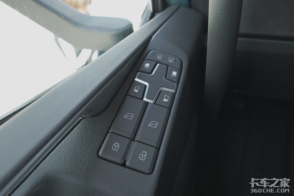 在车门板的上侧,集成有一键升降、中控锁、后视镜电动调节、电加热等功能,驾驶员伸手就可操作,十分方便。