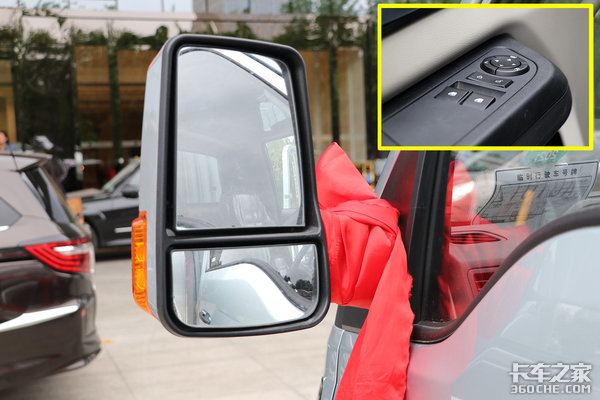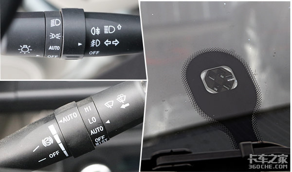 另外在实拍车的挡风玻璃前方,配有光感和雨量传感器,这带来的衍生配置就是自动大灯和自动雨刷功能,这两项完全是越级的配置存在了,因为它们在重卡牵引车型上都不常见。