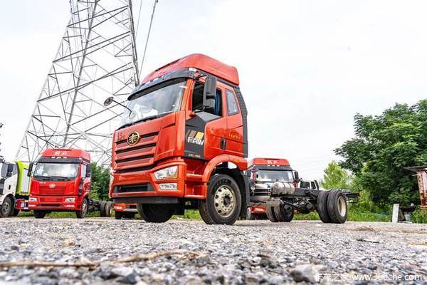 变速箱方面,这款车搭载了一汽解放CA8TAX100FS变速箱,共有8个前进挡位,最高挡为超速挡,挡位速比0.783,也支持10万公里长换油。当然,变速箱可以选装AMT自动挡。