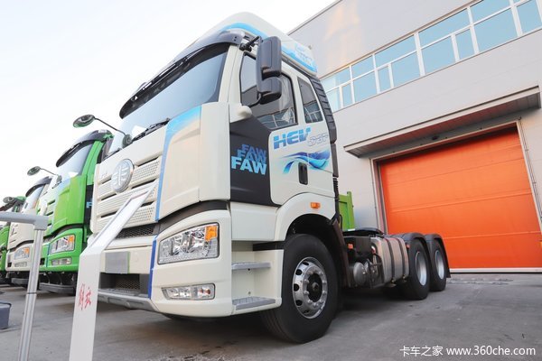 如今各大厂商都有更新旗下混合动力重卡,比如青岛解放JH6混合动力牵引车和一汽解放J6P混动版。这两款车型都是HEV混合动力,采用P2电机的结构,车辆会自动识别电池电量、车辆速度、起步状态,不用人工干预,能有效节油15%~20%。