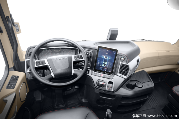这里到了我们要说了第五种定制配置——10.4寸液晶中控大屏。对于高端卡车来说,车载影音娱乐系统是舒适性的重要组成部分,尤其对于跑长途的卡友们来说,一块功能丰富的车机系统,可以让行车更惬意。