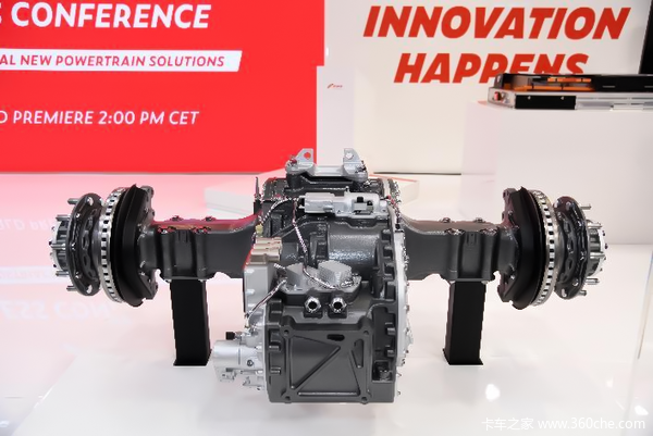 在电动系统展区,菲亚特动力科技推出了第二代eAX375-R电驱桥,据悉,该电驱桥采用双速齿轮组结构设计,具备更高的性能和效率,同时还具有强大的拓展性,可针对不同用户的使用场景来扩大应用范围。