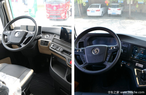 中控部分,我个人觉得两款车设计的都很不错,改款德龙X6000最明显的变化就是用上了悬浮液晶大屏,这个设计在乘用车中尤为常见,并且中控部分还向往进行了一定程度的延伸,这样驾驶员在使用各功能按键时,就无需向前面俯身进行操作,伸手即可触碰。