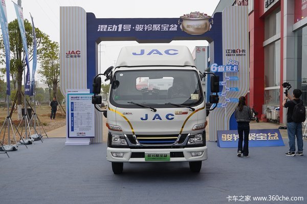外观方面,江淮1卡骏铃聚宝盆在整体造型方面依然采用骏铃平台,不过在外观上进行了革新。其中最瞩目的当显车辆前脸处金色线条所勾勒出的聚宝盆图样,不仅辨识度满满,并且寓意吉祥。车辆的两条前格栅一蓝一金,搭配上蓝色JAC字样,也凸显出了车辆混合动力的身份。