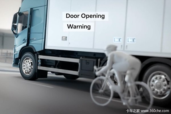 开门警告:正如前文所说,沃尔沃的开门警告系统可安装在卡车的两侧,如果行人、骑自行车的人或汽车等移动物体从卡车的侧面监控区域从后方接近,则会发出警告。