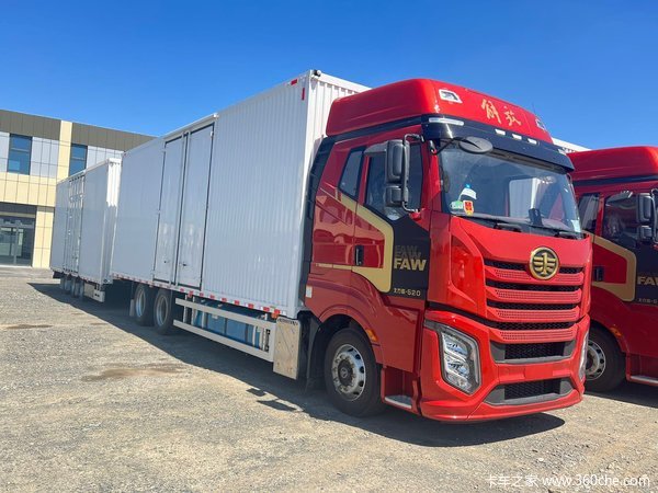 【卡车之家 原创】一次运输能装下125立方的货物?这样的运输车你敢想吗?敢想!就在前两天,一汽解放520马力J6V 6x4中置轴厢式货运列车在新疆乌鲁木齐举办上市仪式,那这款能装下125方货物的解放J6V具体配置如何呢?咱往下看!