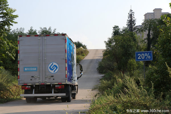 令我没想到的是,我们所驾驶的轻卡竟然配备了排气制动,且排气制动实现了和变速箱的联动,从而让车辆在长下坡路段行驶更加安全。