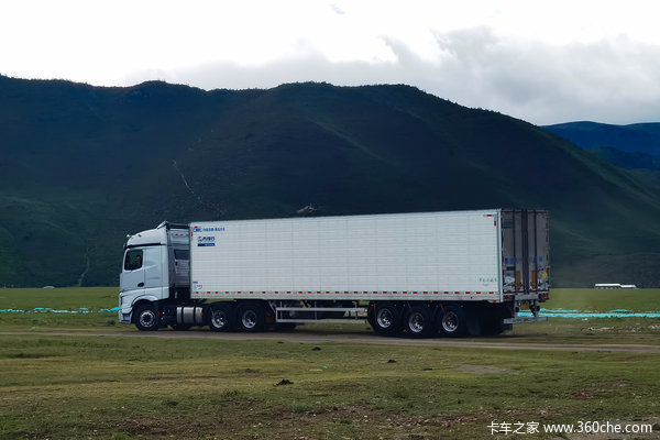 牵引车以及挂车都配备了空气悬挂,一方面可以为整车的降重起到作用,另一方面,空气悬挂减震在面对颠簸时,能更加柔和地处理这些冲击,从而对车辆以及所装的货物起到一定的保护作用。