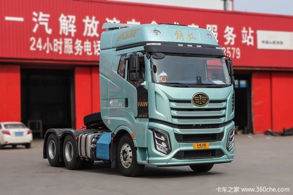 与620马力发动机相匹配的传动系统为解放CA12TAX275AR领动畅行版AMT变速箱,以及速比为3.417的轻量化440后桥。