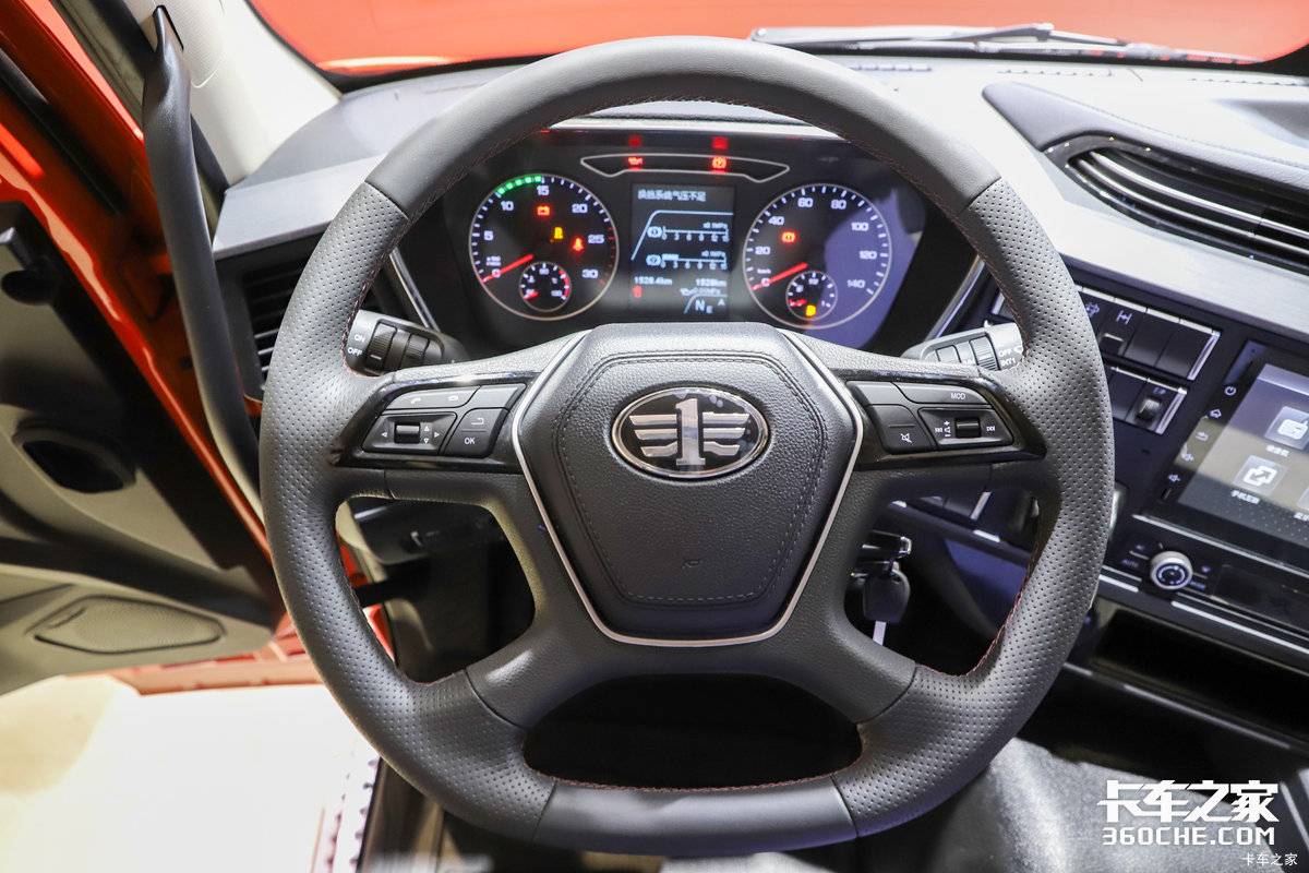 进入驾驶室内部,解放J6E内饰的做工与质感良好。多功能方向盘、大尺寸中控液晶屏、车联网系统等一应俱全,支持导航、影音娱乐、车辆状态监控、远程故障诊断等功能,极大提升了驾乘的便捷性与舒适度。