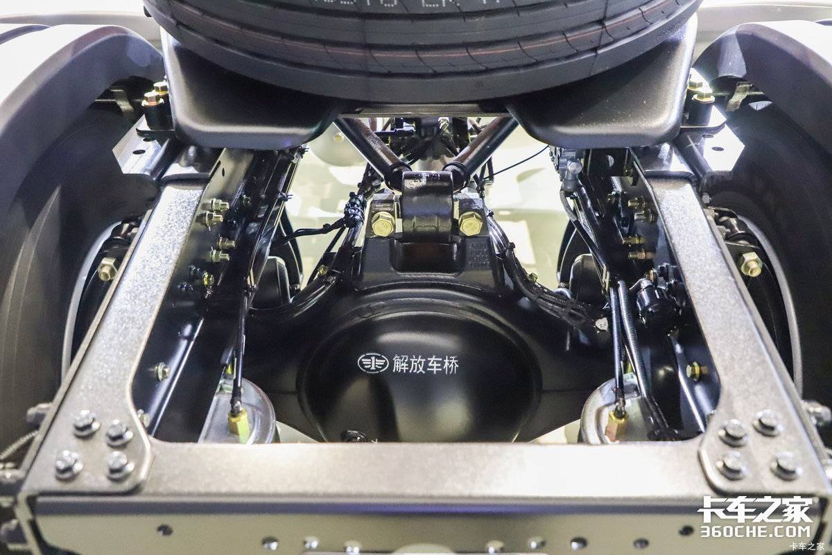 后桥采用解放自研的440升级冲焊桥,速比2.688。这套全新的动力搭配,也是目前解放的智慧动力域,可以保证车辆高效、经济、可靠运行。