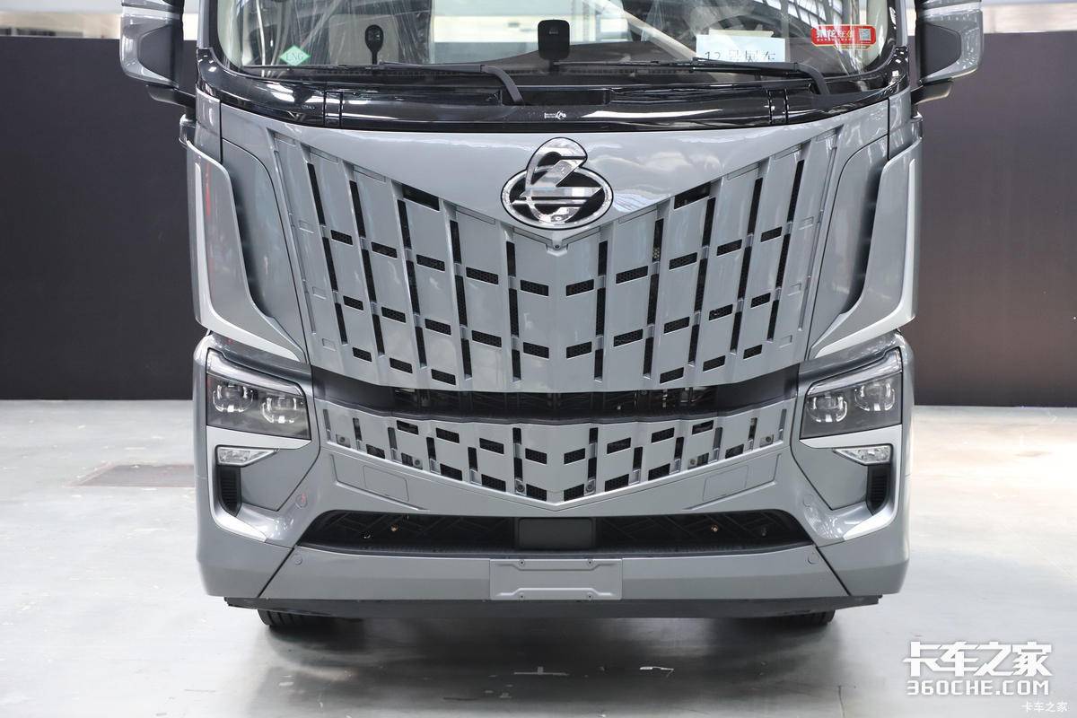 东风柳汽乘龙HK的前脸一眼看去就让人过目不忘,采用的是V型大尺寸盾形进气格栅,纵横交错的线条分割出一片片导流板,形似“龙甲”。不仅视觉冲击力强,还通过风阻优化,有效的降低了0.5平方米的风阻面积。