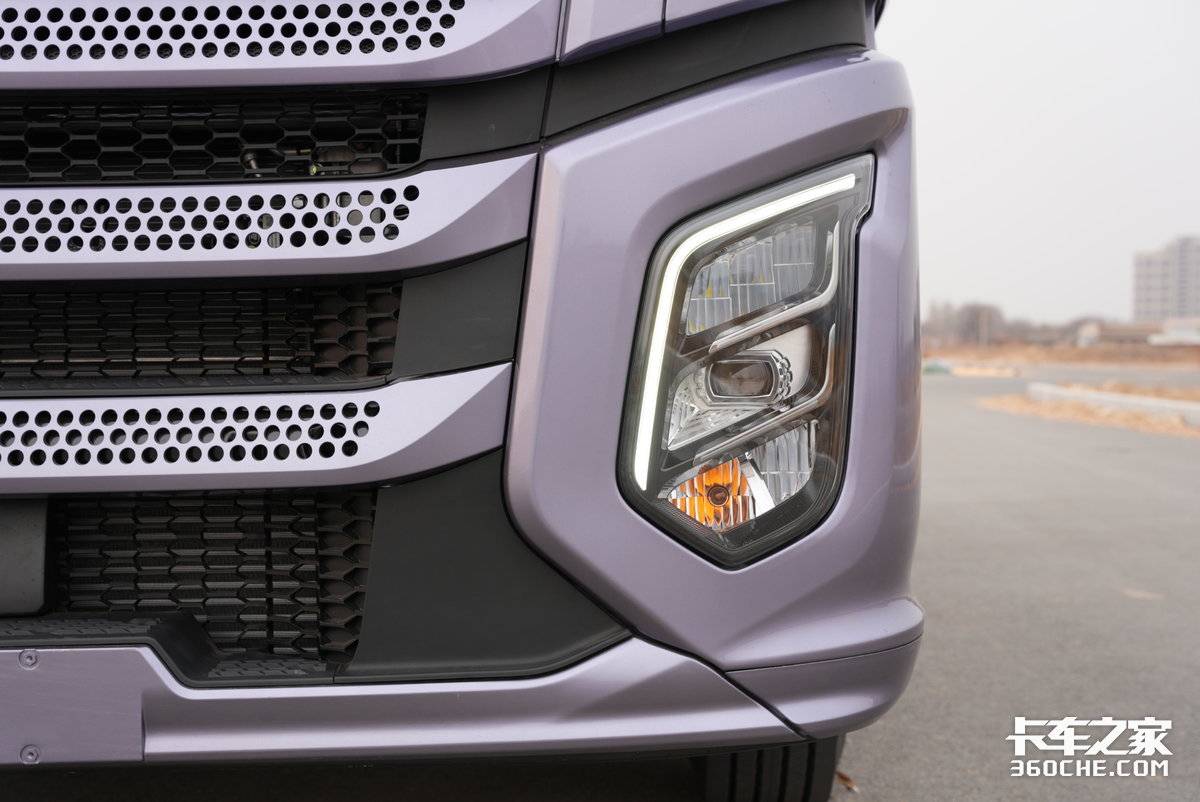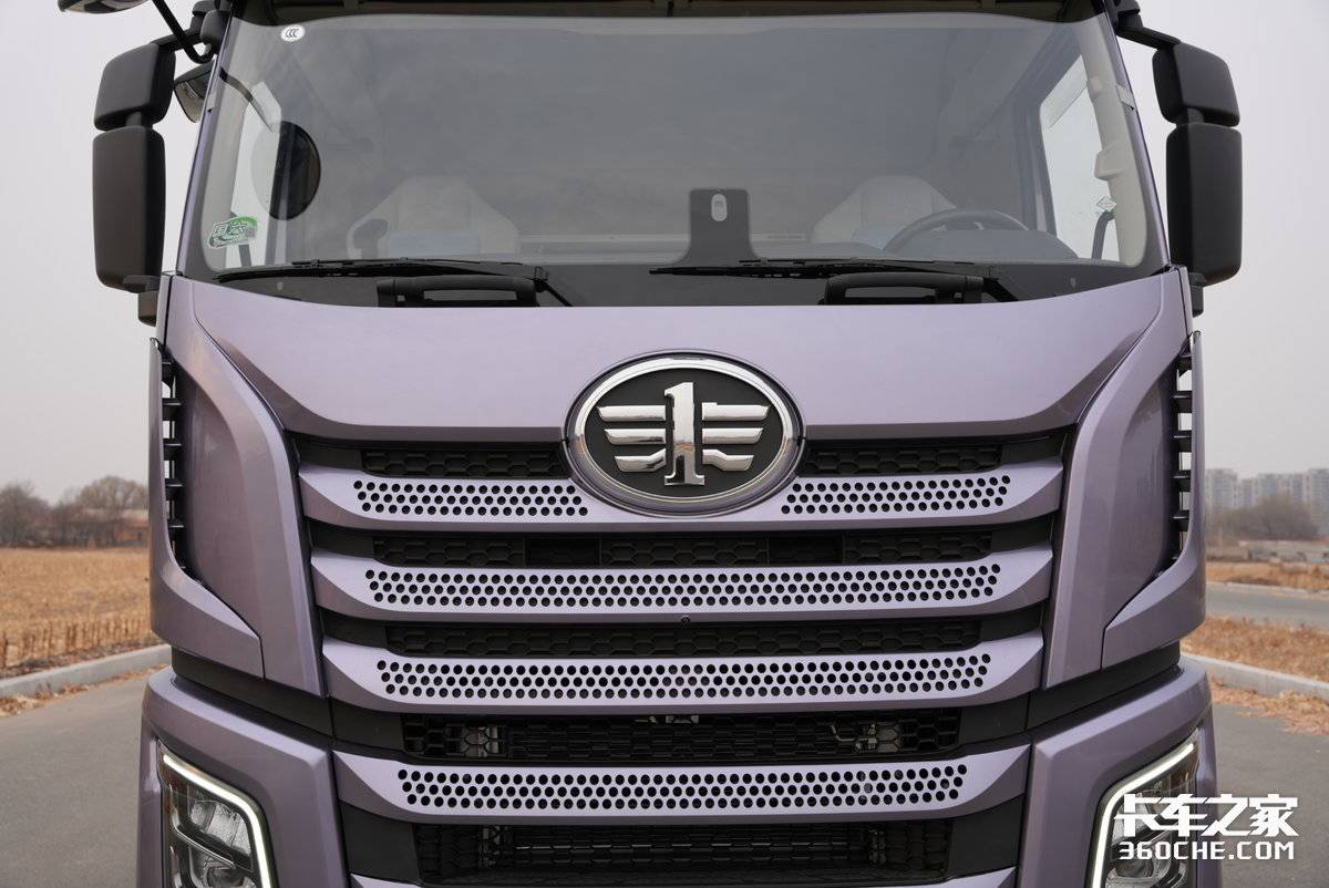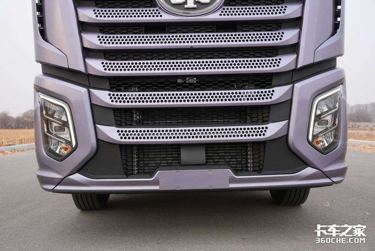 细节部分,全新车型除了保留J6系列经典车漆颜色,还推出了冰川蓝、雪青灰以及极光紫三款车漆(实拍车为雪青灰车漆),更迎合了时下年轻人的审美特点。同时,前面板采用五层进气格栅,造型延续经典的同时,散热开口更大,能满足大负荷爬坡时的散热需求。