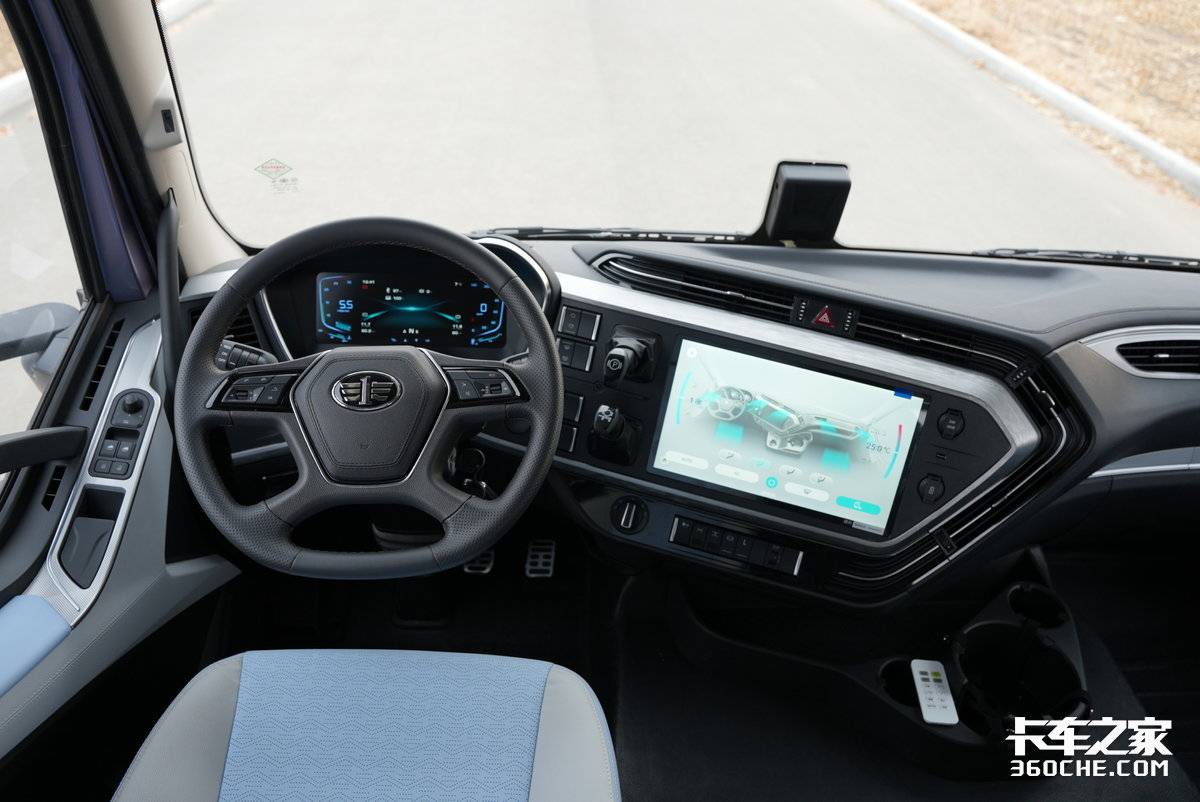 驾驶室方面,新款车型采用低地板驾驶室,空间较现款J6系列车型有了大幅提升。虽然仍有中央通道凸起,但高度仅为175mm,与一台手机的长度相当。地板中间到天花板的距离为1895mm,对于绝大部分成年人来说,在室内站立不成问题。
