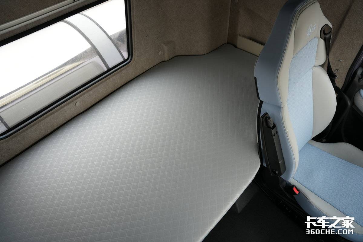 卧铺尺寸一直是J6系列车型的一大亮点,全新J6Pro的卧铺表现依旧出色。得益于驾驶室后围进一步扩宽,该车的卧铺最宽处可达950mm,填充物选用了PUR泡沫垫和棕丝垫,宽敞透气不闷汗,能提升睡眠质量。