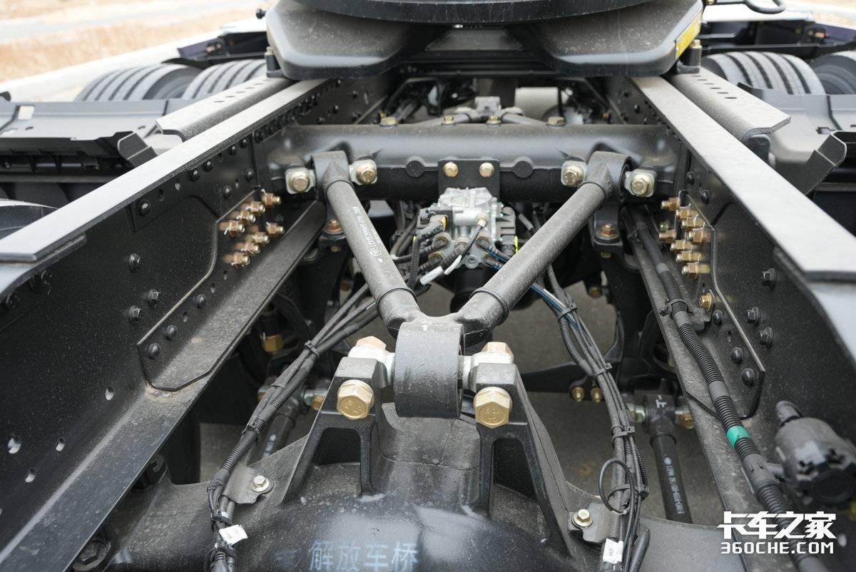 驱动桥为升级后的435型号,速比3.545,驱动桥在传动效率上的提升是节省油耗的关键。更低的摩擦系数减少了不必要的传动损耗,同时搭配自主长寿命油润滑轮端,无需扒轮,5万公里保养一次,保养流程更简单,能帮助卡友节省更多保养费用。
