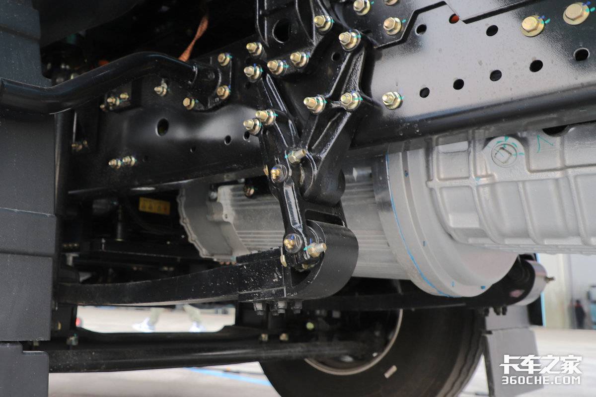 德龙M5000E的底盘采用高强度轻量化车架,多部位应用铝合金材质,包括轮圈、防护装置等。在保障承载与安全的同时,实现整车自重优化,整车重量控制在9.2吨左右,较同类产品领先400kg,助力用户提升载货收益。
