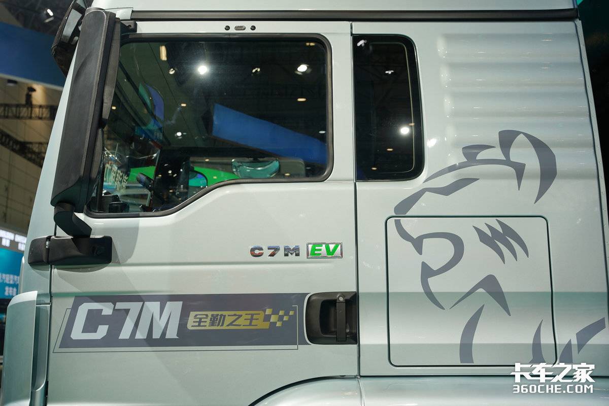 车身侧面线条简洁有力,“C7M”、“EV”、“全勤之王”等标识十分醒目,搭配上造型独特的猛虎拉花,彰显其品牌身份、电动属性和出众的车辆性能,整体造型在务实中透出先进工艺的质感。