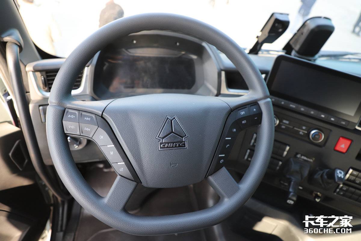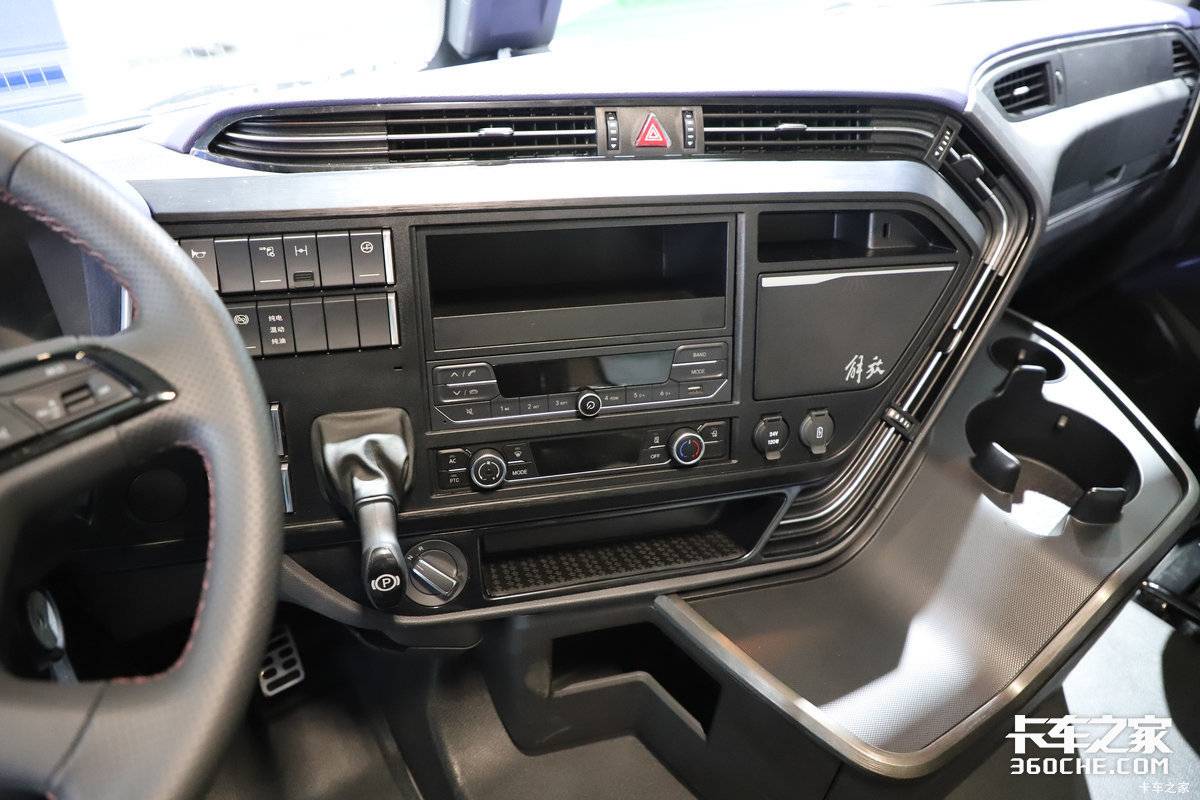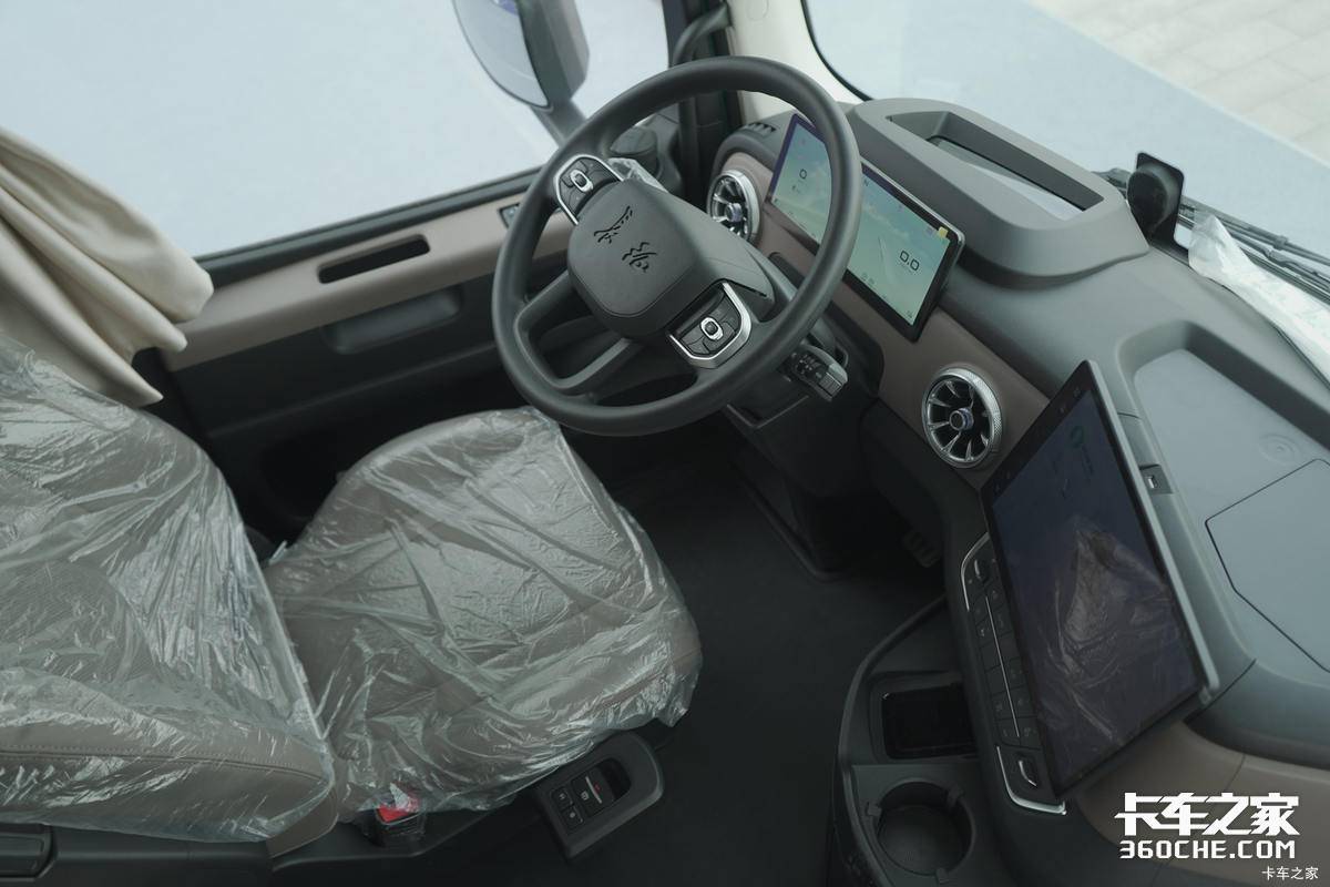 ● 内饰配置:内饰设计彻底颠覆传统重卡印象,采用了环绕式智慧座舱理念。超大尺寸的液晶显示屏和中控屏是视觉焦点,集成了中控娱乐、车辆控制等功能。材质用料讲究,座椅包裹性强,营造出堪比高端乘用车的豪华与科技氛围。