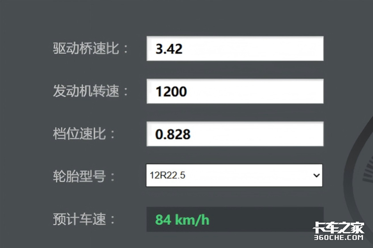 该车的后桥速比为3.42,更低的速比意味着卡车在高速行驶时有更好的能耗表现。经过卡车之家车速计算器计算,84km/h为本款车型的理想车速。也说明这台车所适用的工况还是以高速干线物流为主的长途运输。