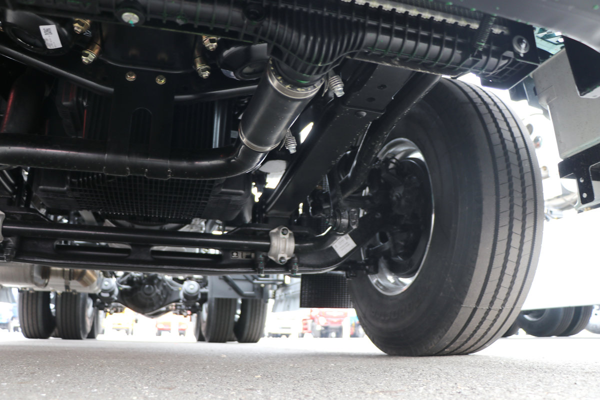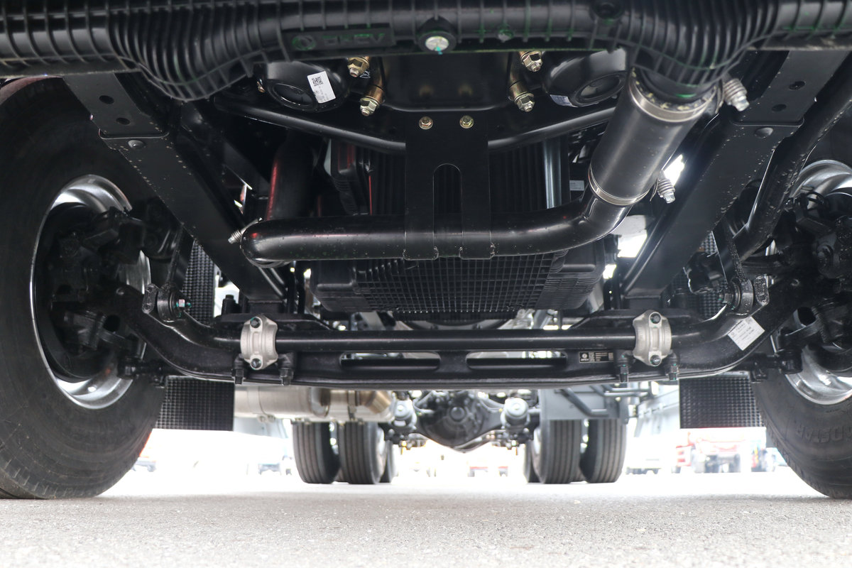 底盘方面,该车采用了前2后3的少片簧,搭配轻量化V型推力杆,以及全新的高强钢大梁,既可以保证整车的使用强度,也可以降低自重。该车也可以选装铝合金轮辋,来进一步控制整车自重。