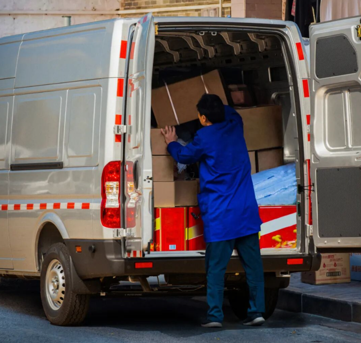 在货运行业,空间就是生产资料。御风V9 的11.9m货厢容积和1.95米内高,创造的是一个能让人直立作业的移动仓库。但比数据更有说服力的是装卸现场的场景------270°大开度的后门展开,叉车可以直接进出,这种设计改变的不是一个角度,而是整个作业流程的效率逻辑,时间,在这里被量化成了更多趟次、更高收入。