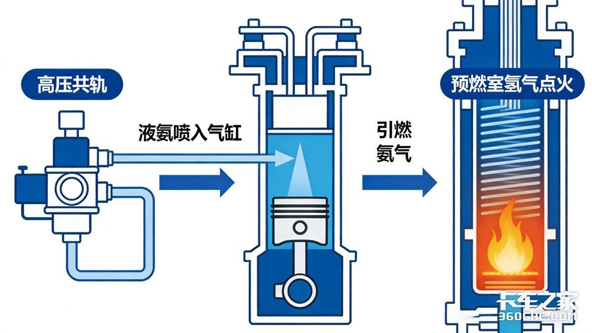 简单说,氨就像一个方便携带的“氢行李箱”,把氢元素安安稳稳地运到发动机里,再通过燃烧释放能量。这样一来,既绕开了氢燃料电池高昂的制造成本和复杂的热管理系统,也解决了纯电动卡车充电慢、续航短的短板。