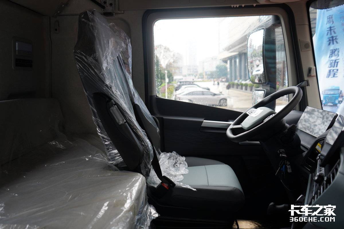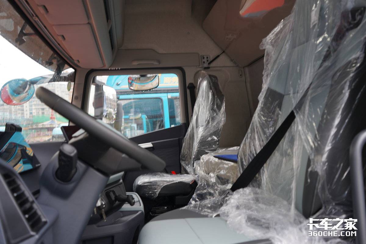 配置上,配备了电加热电动后视镜,不仅调节方便,在雨雪天气中也能保证清晰的视野,提升行车安全。此外,驾驶室还支持电动举升,日常检修维护更加省力。