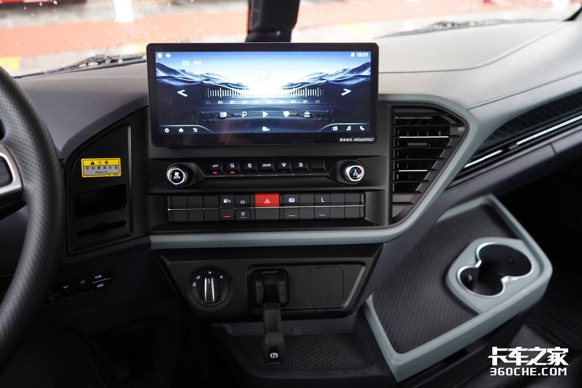 中控台的设计以“暖系色彩”为主,营造出一种温馨的居家感。最吸睛的当属那块12.3寸的悬浮式显示屏,不仅提升了车内的科技氛围,更集成了四方位影像功能。驾驶员可以轻松掌握车辆周围的情况,彻底消灭视野盲区,无论是穿梭于狭窄的货场还是倒车入库,都变得更加从容和安全。