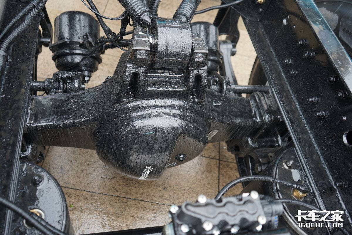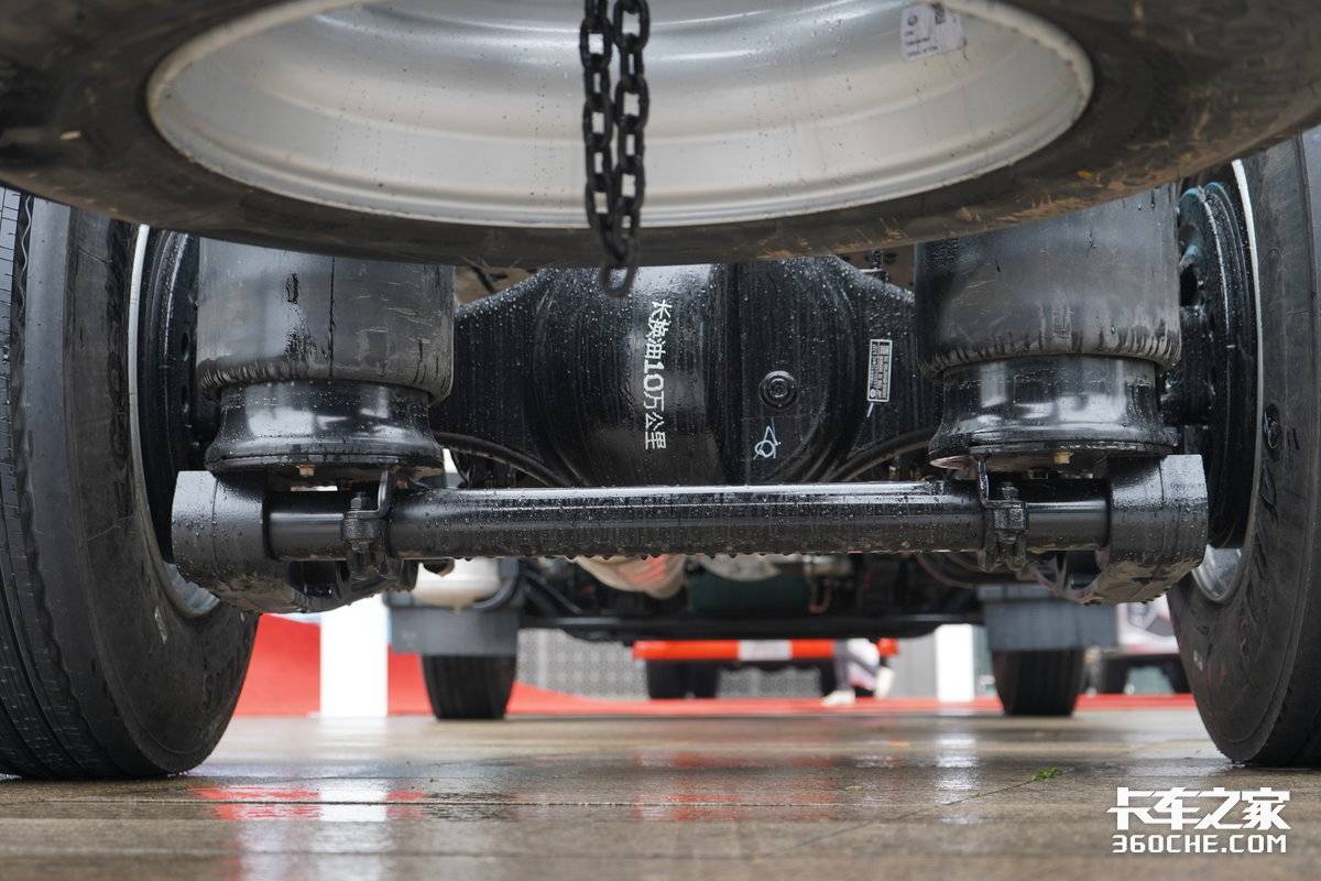 后桥方面,该车采用了378铸造桥,速比为3.1的小速比设计,配合大马力的发动机和AMT变速箱,组成了一套典型的大马力、小速比、高效率的动力链,让车辆在高速巡航时发动机转速更低,从而实现更高的燃油经济性。