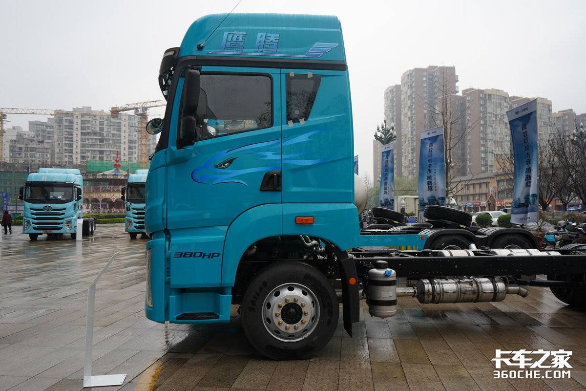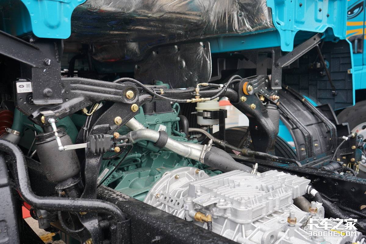 高效物流,动力先行。实拍的这款鹰腾载货车搭载了解放动力CA6DK2-38E65发动机,排量为7.8L,最大输出功率达到了380马力,在1300-1500转时可爆发峰值扭矩。