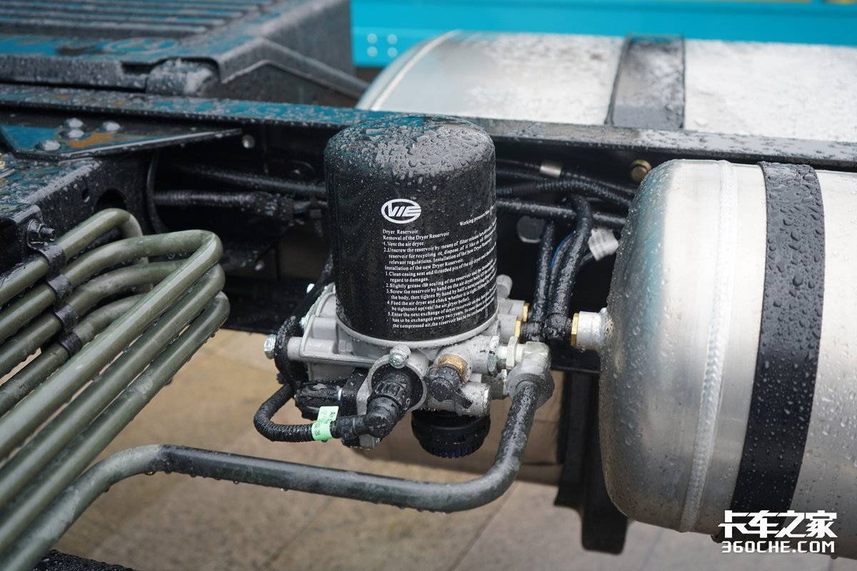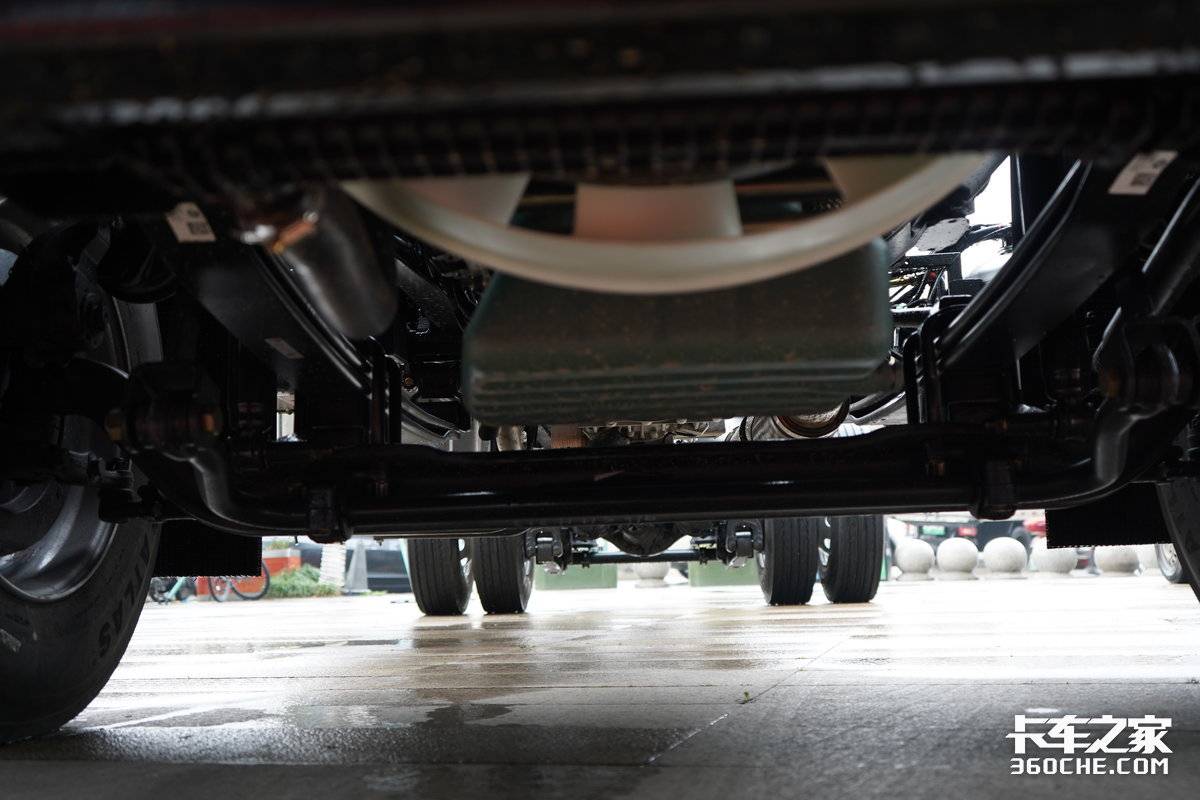悬架方面,这款车采用的是前钢板悬架后气囊悬架,气囊悬架可以在行车中减少颠簸,降低货损,对于主打绿通运输的6米8载货车非常友好。
