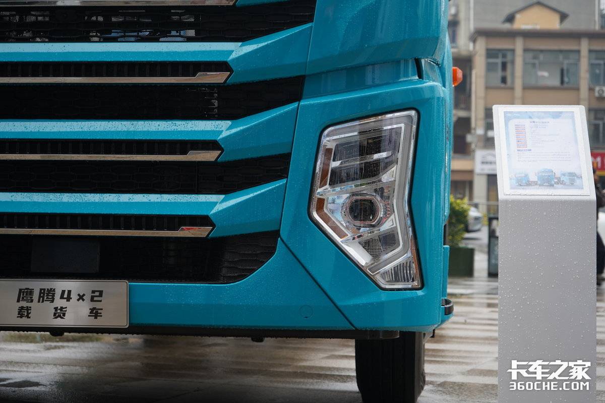 第一眼看到这款鹰腾载货车,相信很多人都会被它独特的“蒂芙尼蓝”涂装所吸引。在传统以红、白为主色调的载货车市场中,这种清新、时尚的颜色无疑能让人眼前一亮,非常符合年轻一代卡友的审美。