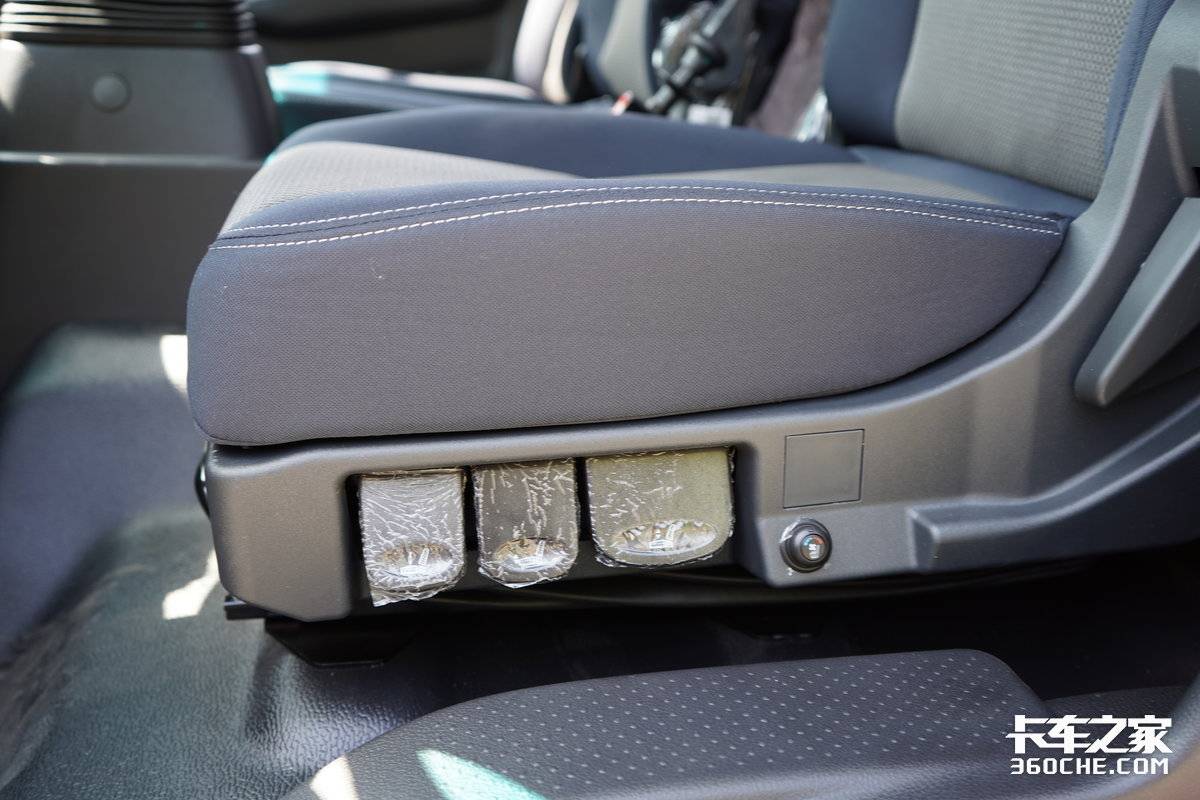 标配的气囊减震座椅也是一大亮点,在一条坑洼的乡道上,座椅的滤震效果明显优于传统机械减震座椅,而且一键充放气再加座椅倾角的调节,可以让驾驶员找到最舒服的驾驶姿势。