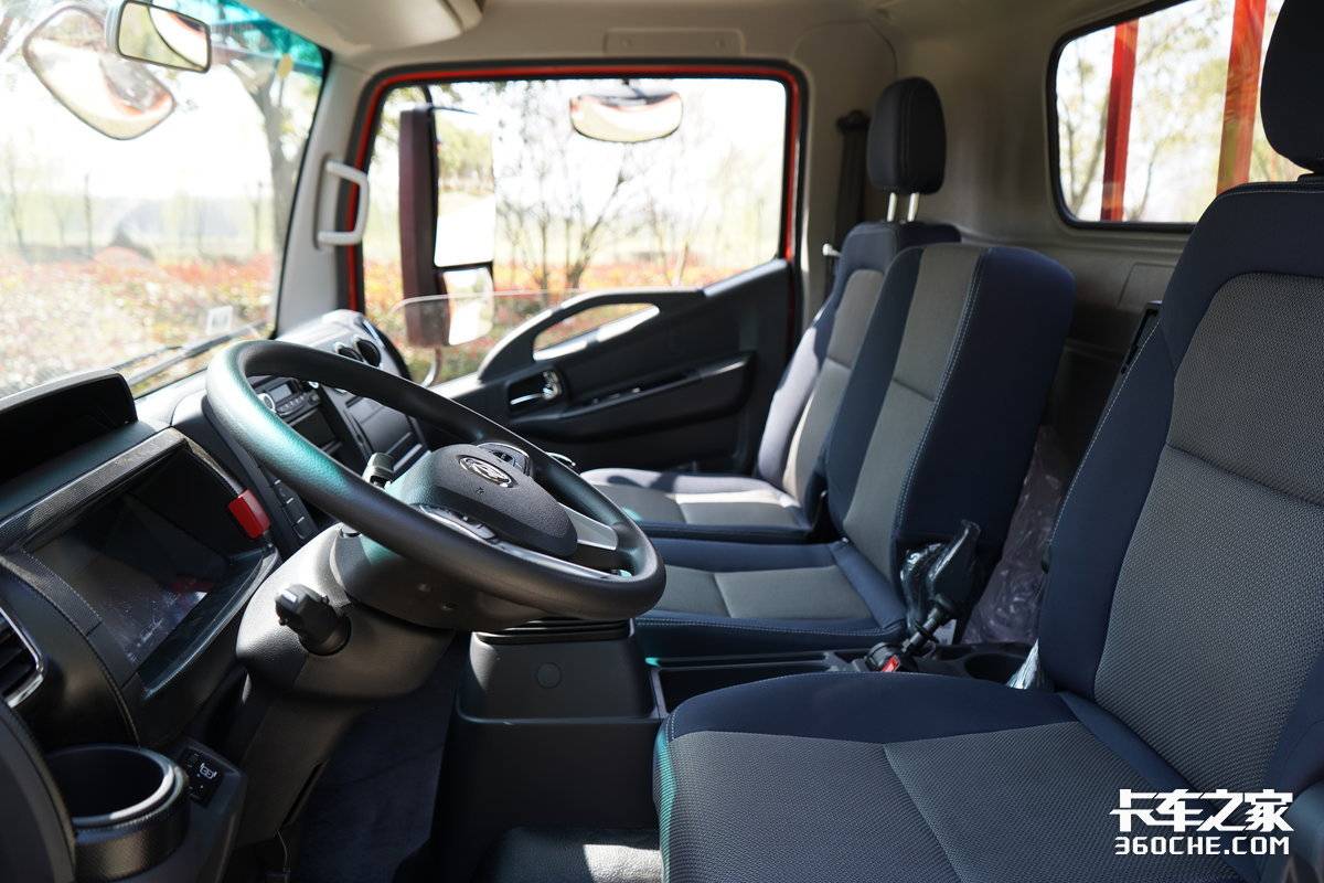 坐进驾驶室里,2100mm宽体驾驶室的优势立刻体现,横向空间宽裕,即使副驾坐两个人,也丝毫不觉得局促。
