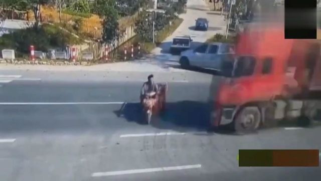 这三轮车男子到底咋想的?明明已经看到大货车了,还往