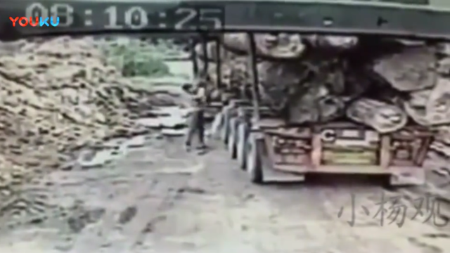 卡车满载木材, 小伙子刚要检查下车况, 监拍骇人一幕!