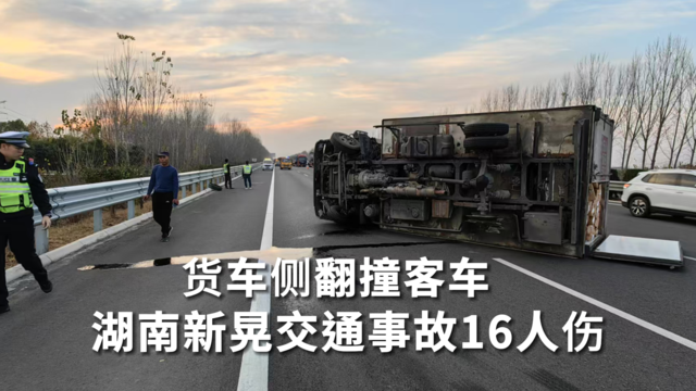 货车侧翻撞客车湖南新晃交通事故16人伤