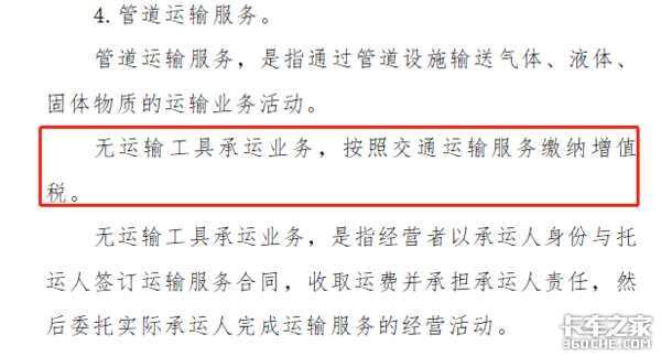 因此,通知中还明确规定:无运输工具承运业务,按照交通运输服务缴纳增值税。