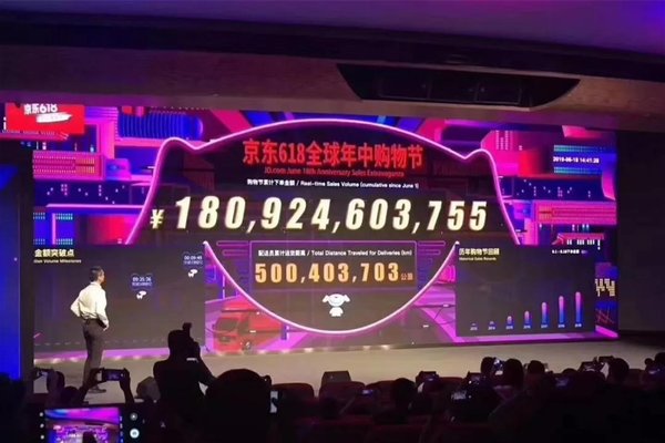 6月18日,在京东2019年618媒体开放日现场获悉:截止6月18日14点41分28秒,京东618累计下单金额已破1800亿元,超过2018年双11。